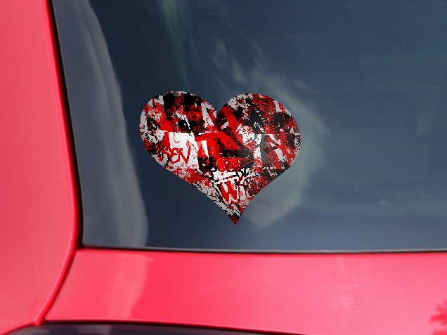 Red Graffiti - I Heart Love Car Window Decal 6.5 x 5.5 inches