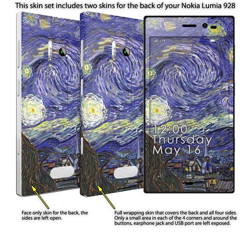 • Decal style vinyl skin covers front, back and side of Nokia Lumia 928 phone.