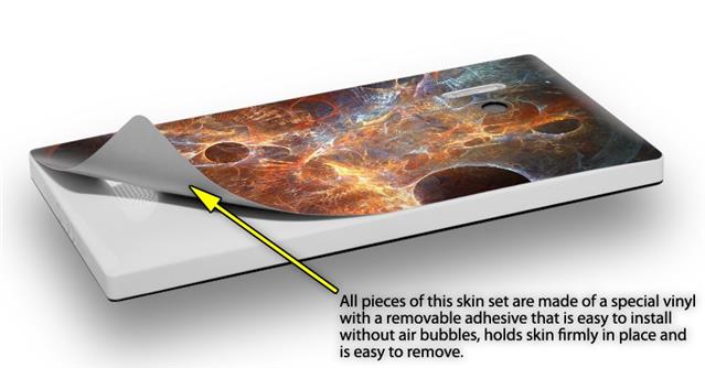 • Decal style vinyl skin covers front, back and side of Nokia Lumia 928 phone.