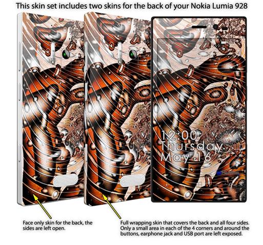 • Decal style vinyl skin covers front, back and side of Nokia Lumia 928 phone.