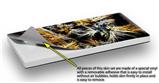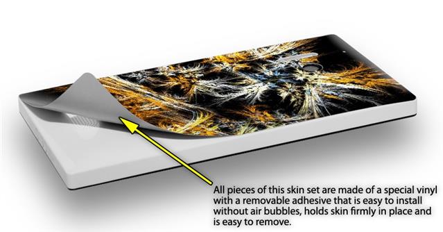 uSkins™ are self adhering vinyl skins that help prevent scratches and look great doing it. Unlike bulky silicon, plastic or metal cases and faceplates, uSkins are designed to be thin and very tough. uSkins are a composite of two layers of commercial grade materials. The bottom layer is a soft, flexible vinyl with a special removable adhesive that is easily positioned, applied without air bubbles, and effortlessly removed without leaving a sticky residue. Next we print the bottom layer with UV protected, fade resistant inks that deliver superb photo quality designs in vibrant colors. Finally we bond a professional grade laminate over the entire skin adding a glossy protective finish.