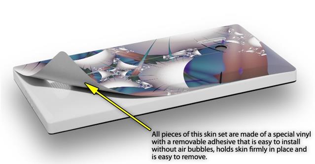 uSkins™ are self adhering vinyl skins that help prevent scratches and look great doing it. Unlike bulky silicon, plastic or metal cases and faceplates, uSkins are designed to be thin and very tough. uSkins are a composite of two layers of commercial grade materials. The bottom layer is a soft, flexible vinyl with a special removable adhesive that is easily positioned, applied without air bubbles, and effortlessly removed without leaving a sticky residue. Next we print the bottom layer with UV protected, fade resistant inks that deliver superb photo quality designs in vibrant colors. Finally we bond a professional grade laminate over the entire skin adding a glossy protective finish.