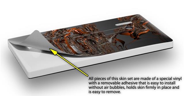 uSkins™ are self adhering vinyl skins that help prevent scratches and look great doing it. Unlike bulky silicon, plastic or metal cases and faceplates, uSkins are designed to be thin and very tough. uSkins are a composite of two layers of commercial grade materials. The bottom layer is a soft, flexible vinyl with a special removable adhesive that is easily positioned, applied without air bubbles, and effortlessly removed without leaving a sticky residue. Next we print the bottom layer with UV protected, fade resistant inks that deliver superb photo quality designs in vibrant colors. Finally we bond a professional grade laminate over the entire skin adding a glossy protective finish.