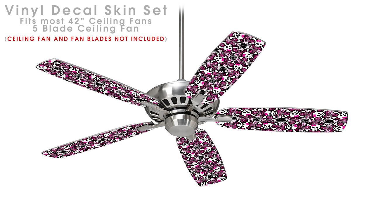 Splatter Girly Skull Pink - Ceiling Fan Skin Kit fits most 42 inch fans (FAN and BLADES SOLD SEPARATELY)