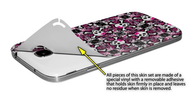• Decal style vinyl skin covers front and back of Samsung Galaxy S4 phone.