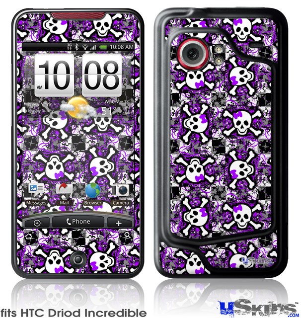 HTC Droid Incredible Skin - Splatter Girly Skull Purple