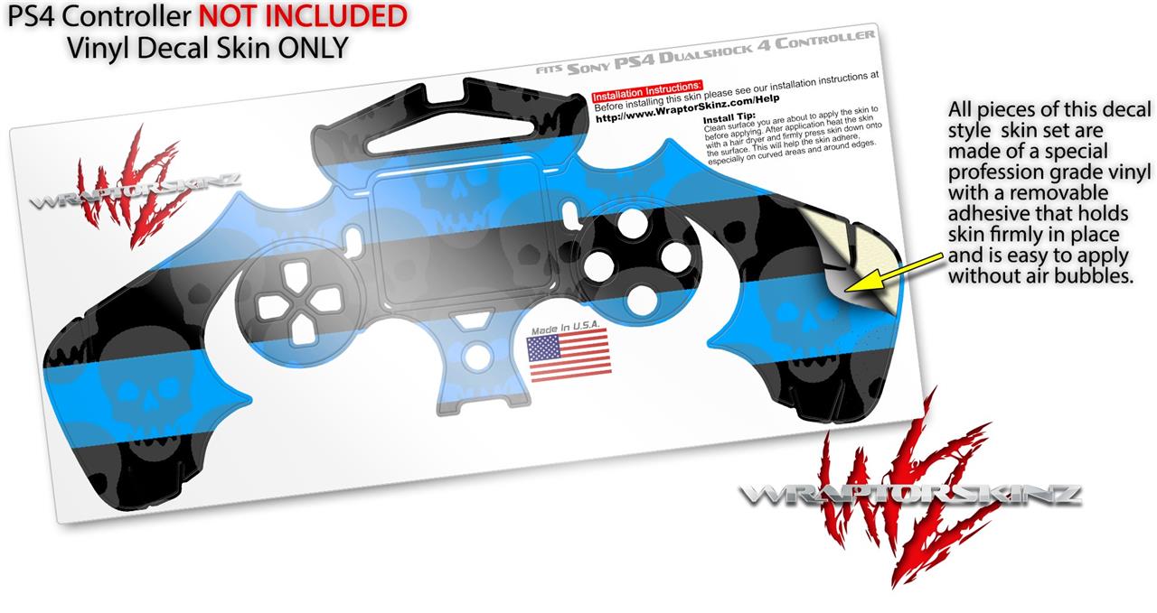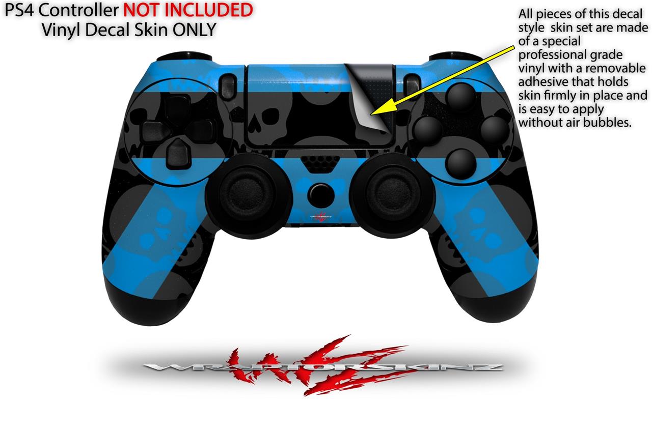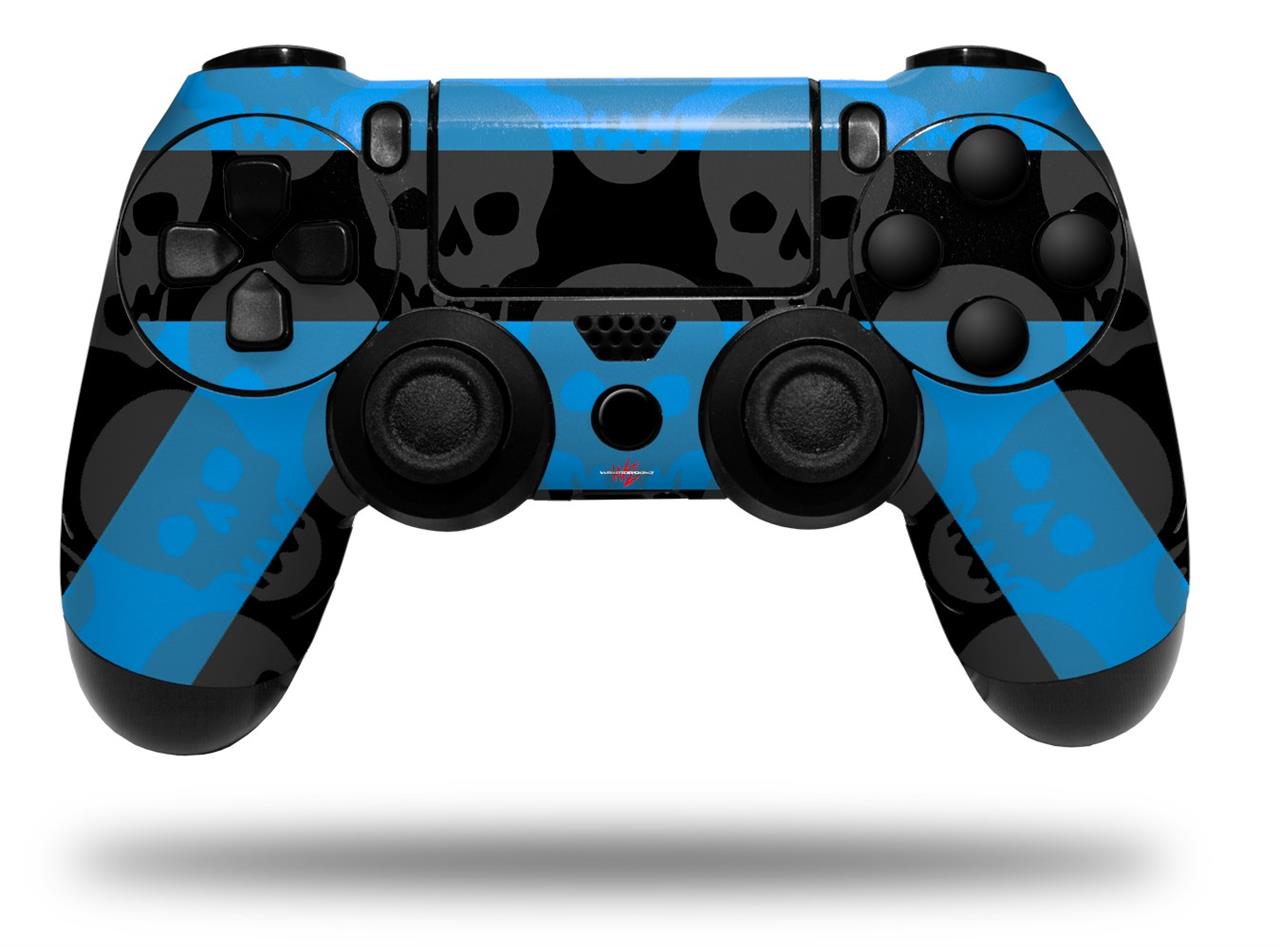 WraptorSkinz Skin compatible with Sony PS4 Dualshock Controller PlayStation 4 Original Slim and Pro Skull Stripes Blue (CONTROLLER NOT INCLUDED)