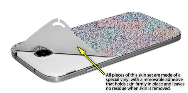• Decal style vinyl skin covers front and back of Samsung Galaxy S4 phone.