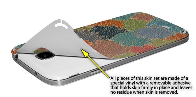 • Decal style vinyl skin covers front and back of Samsung Galaxy S4 phone.