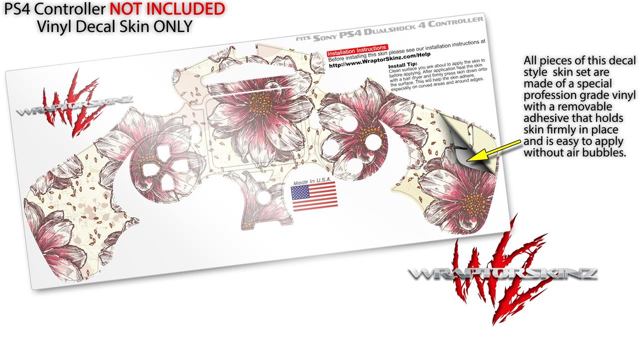 WraptorSkinz Skin compatible with Sony PS4 Dualshock Controller PlayStation 4 Original Slim and Pro Flowers Pattern 23 (CONTROLLER NOT INCLUDED)