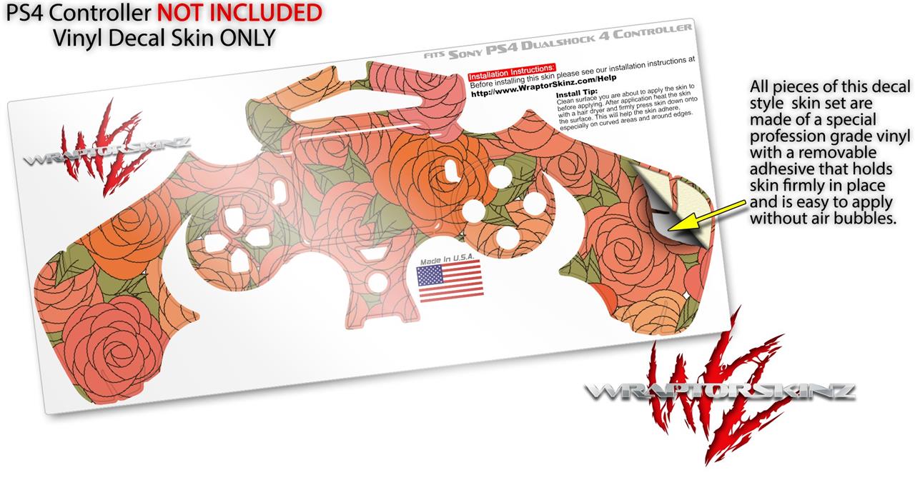 WraptorSkinz Skin compatible with Sony PS4 Dualshock Controller PlayStation 4 Original Slim and Pro Flowers Pattern Roses 06 (CONTROLLER NOT INCLUDED)