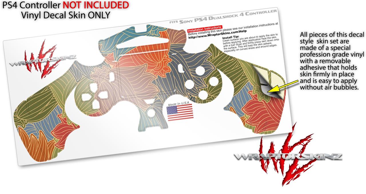 WraptorSkinz Skin compatible with Sony PS4 Dualshock Controller PlayStation 4 Original Slim and Pro Flowers Pattern 03 (CONTROLLER NOT INCLUDED)