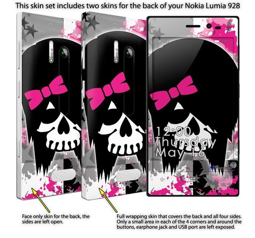 • Decal style vinyl skin covers front, back and side of Nokia Lumia 928 phone.