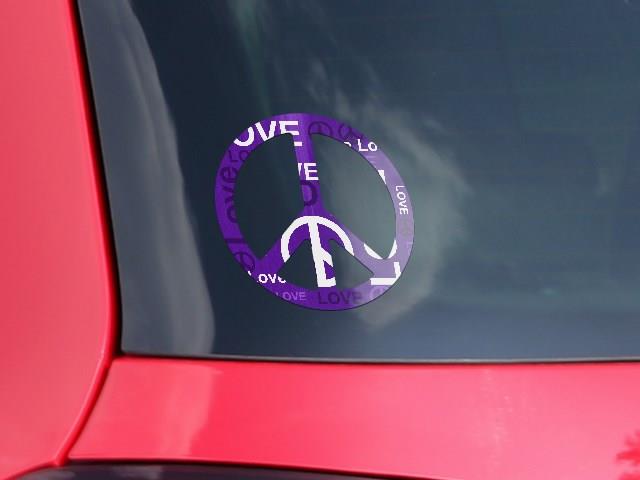 Love and Peace Purple - Peace Sign Car Window Decal 6 x 6 inches