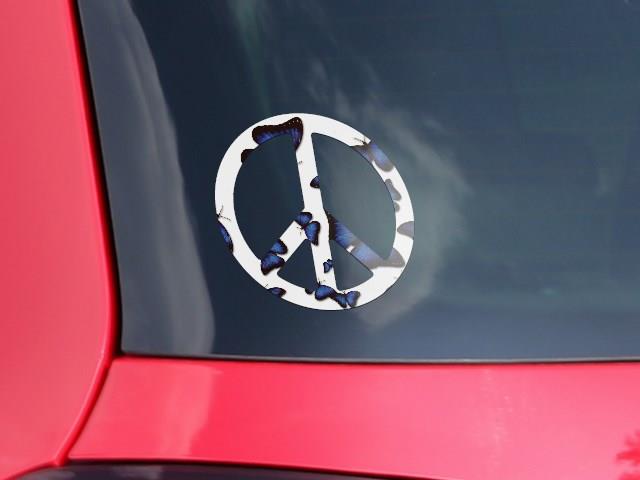 Butterflies Blue - Peace Sign Car Window Decal 6 x 6 inches
