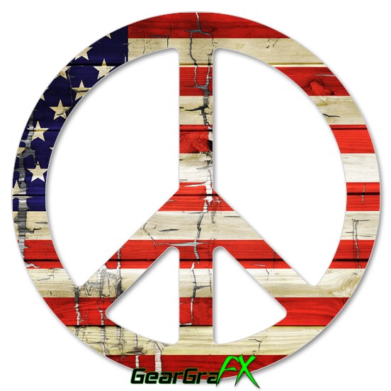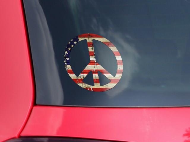 Painted Faded and Cracked USA American Flag - Peace Sign Car Window Decal 6 x 6 inches
