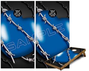 Cornhole Game Board Vinyl Skin Wrap Kit - Barbwire Heart Blue fits 24x48 game boards (GAMEBOARDS NOT INCLUDED)