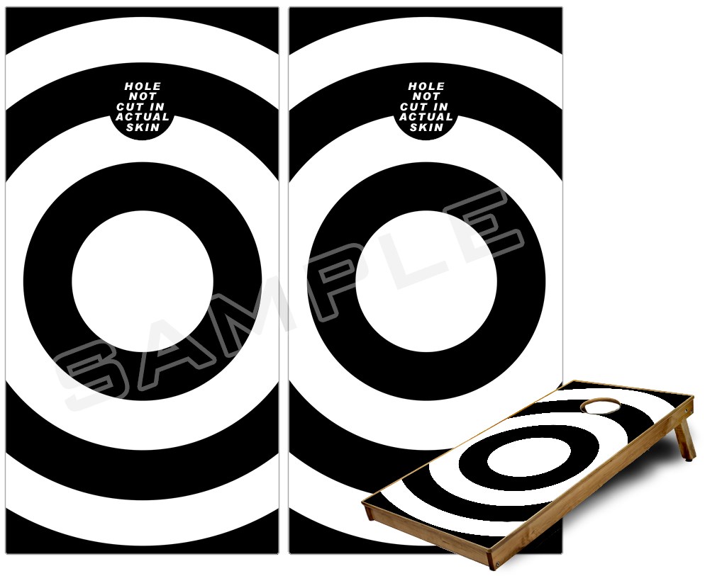 Cornhole Game Board Vinyl Skin Wrap Kit - Bullseye Black and White fits 24x48 game boards (GAMEBOARDS NOT INCLUDED)