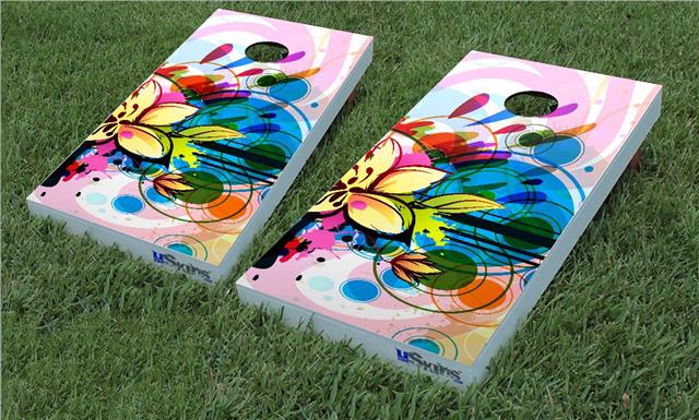 Cornhole Game Board Vinyl Skin Wrap Kit - Floral Splash fits 24x48 game boards (GAMEBOARDS NOT INCLUDED)