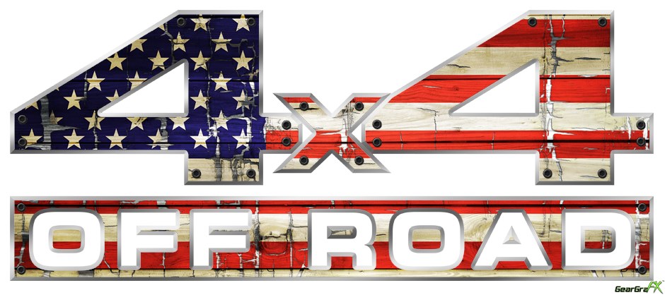 Painted Faded and Cracked USA American Flag - 4x4 Decal Bolted 13x5.5 (2 Decal Set)