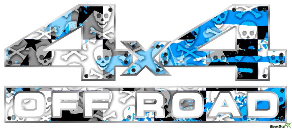 Checker Skull Splatter Blue - 4x4 Decal Bolted 13x5.5 (2 Decal Set)