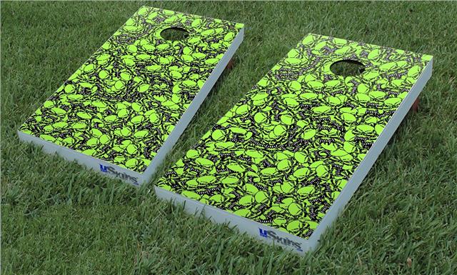 Cornhole Game Board Vinyl Skin Wrap Kit - Scattered Skulls Neon Green fits 24x48 game boards (GAMEBOARDS NOT INCLUDED)
