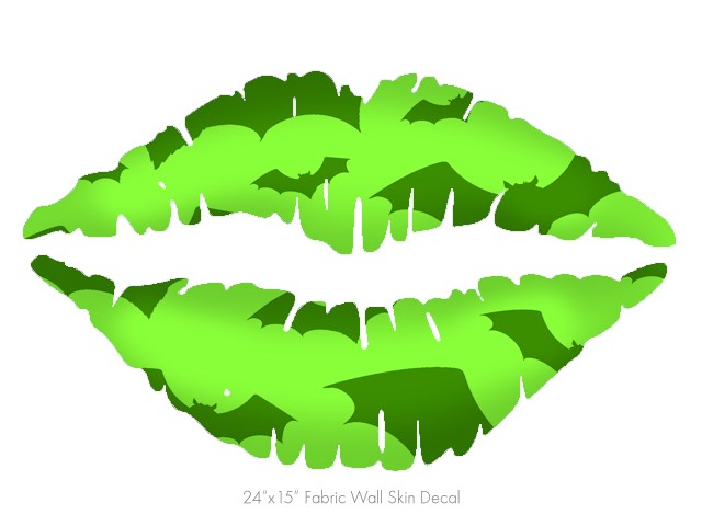 Deathrock Bats Green - Kissing Lips Fabric Wall Skin Decal measures 24x15 inches
