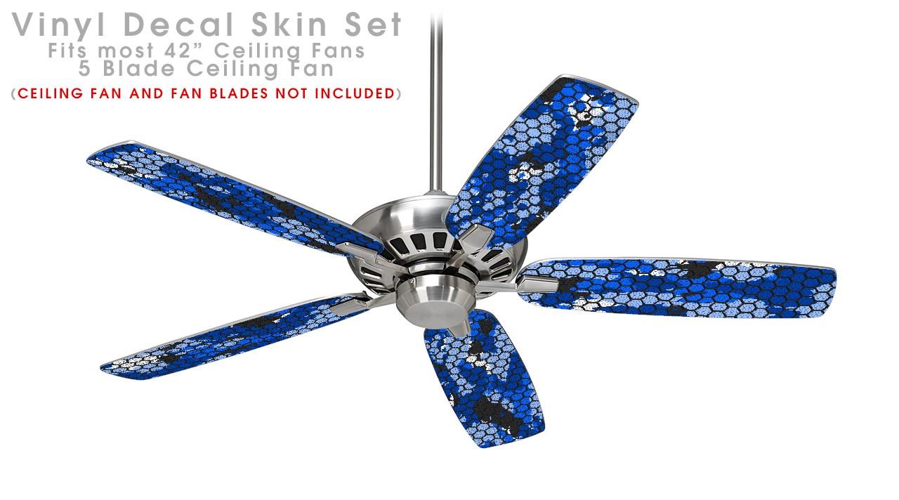 HEX Mesh Camo 01 Blue Bright - Ceiling Fan Skin Kit fits most 42 inch fans (FAN and BLADES SOLD SEPARATELY)