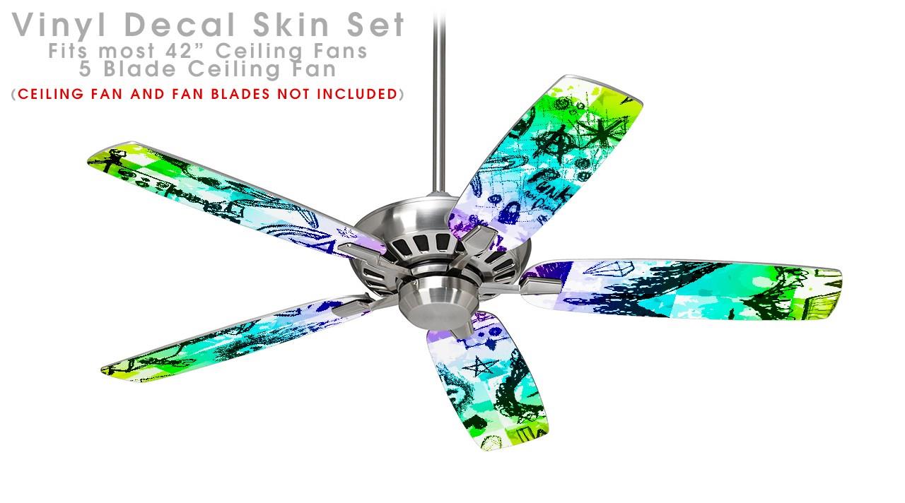 Scene Kid Sketches Rainbow - Ceiling Fan Skin Kit fits most 42 inch fans (FAN and BLADES SOLD SEPARATELY)