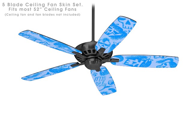 Skull Sketches Blue - Ceiling Fan Skin Kit fits most 52 inch fans (FAN and BLADES SOLD SEPARATELY)