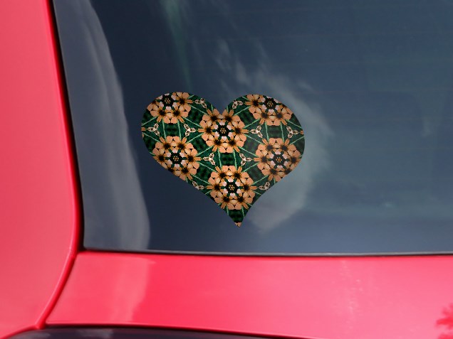 Floral Pattern Orange - I Heart Love Car Window Decal 6.5 x 5.5 inches
