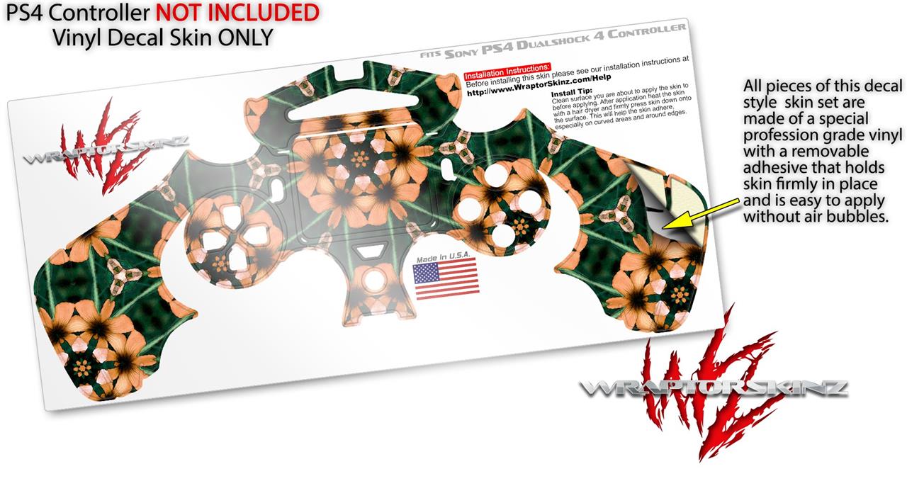 WraptorSkinz Skin compatible with Sony PS4 Dualshock Controller PlayStation 4 Original Slim and Pro Floral Pattern Orange (CONTROLLER NOT INCLUDED)
