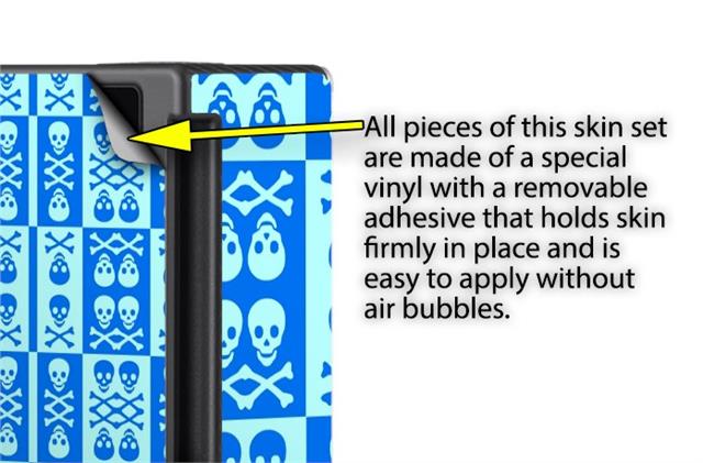 WraptoSkinz™ skins are superb photo quality designs and vibrant colors printed with special Eco-Friendly, fade resistant inks. Our skins are self-adhering flexible vinyl skins that helps prevent scratches. Made of composite, multi-layered commercial grade materials. The bottom layer is made with a special removable adhesive that is easily positioned and applied without air bubbles. We print your design on the bottom layer then bond a professional grade laminate over the entire skin adding a glossy protective finish.