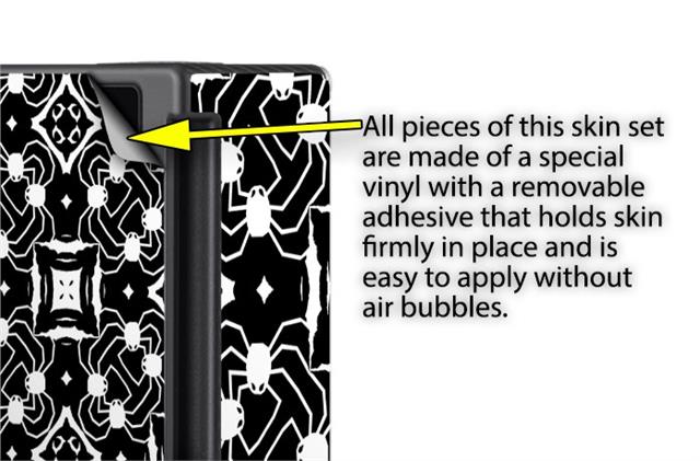 WraptoSkinz™ skins are superb photo quality designs and vibrant colors printed with special Eco-Friendly, fade resistant inks. Our skins are self-adhering flexible vinyl skins that helps prevent scratches. Made of composite, multi-layered commercial grade materials. The bottom layer is made with a special removable adhesive that is easily positioned and applied without air bubbles. We print your design on the bottom layer then bond a professional grade laminate over the entire skin adding a glossy protective finish.