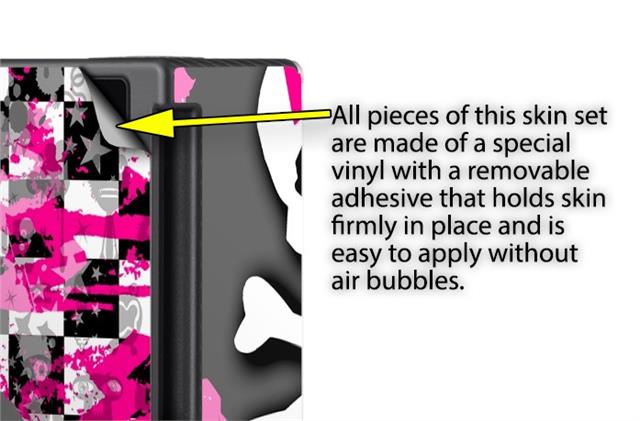 WraptoSkinz™ skins are superb photo quality designs and vibrant colors printed with special Eco-Friendly, fade resistant inks. Our skins are self-adhering flexible vinyl skins that helps prevent scratches. Made of composite, multi-layered commercial grade materials. The bottom layer is made with a special removable adhesive that is easily positioned and applied without air bubbles. We print your design on the bottom layer then bond a professional grade laminate over the entire skin adding a glossy protective finish.