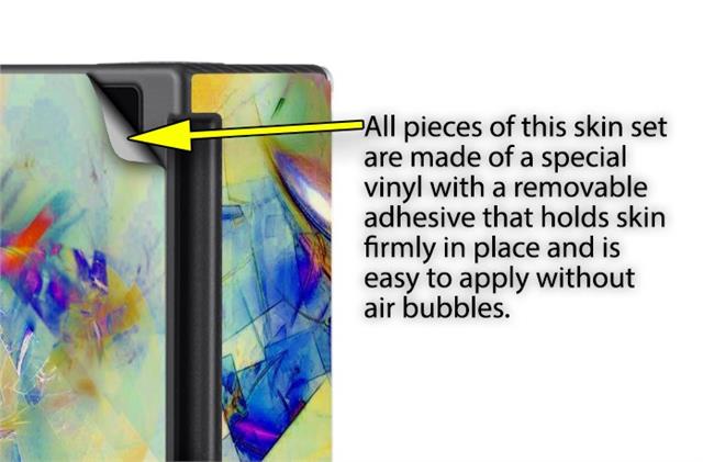 WraptoSkinz™ skins are superb photo quality designs and vibrant colors printed with special Eco-Friendly, fade resistant inks. Our skins are self-adhering flexible vinyl skins that helps prevent scratches. Made of composite, multi-layered commercial grade materials. The bottom layer is made with a special removable adhesive that is easily positioned and applied without air bubbles. We print your design on the bottom layer then bond a professional grade laminate over the entire skin adding a glossy protective finish.