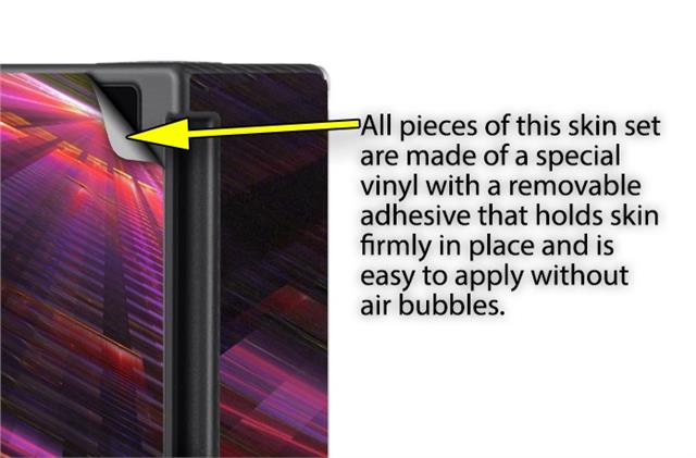 WraptoSkinz™ skins are superb photo quality designs and vibrant colors printed with special Eco-Friendly, fade resistant inks. Our skins are self-adhering flexible vinyl skins that helps prevent scratches. Made of composite, multi-layered commercial grade materials. The bottom layer is made with a special removable adhesive that is easily positioned and applied without air bubbles. We print your design on the bottom layer then bond a professional grade laminate over the entire skin adding a glossy protective finish.