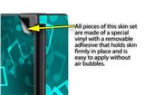 WraptoSkinz™ skins are superb photo quality designs and vibrant colors printed with special Eco-Friendly, fade resistant inks. Our skins are self-adhering flexible vinyl skins that helps prevent scratches. Made of composite, multi-layered commercial grade materials. The bottom layer is made with a special removable adhesive that is easily positioned and applied without air bubbles. We print your design on the bottom layer then bond a professional grade laminate over the entire skin adding a glossy protective finish.