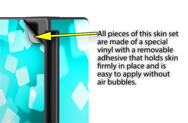 WraptoSkinz™ skins are superb photo quality designs and vibrant colors printed with special Eco-Friendly, fade resistant inks. Our skins are self-adhering flexible vinyl skins that helps prevent scratches. Made of composite, multi-layered commercial grade materials. The bottom layer is made with a special removable adhesive that is easily positioned and applied without air bubbles. We print your design on the bottom layer then bond a professional grade laminate over the entire skin adding a glossy protective finish.