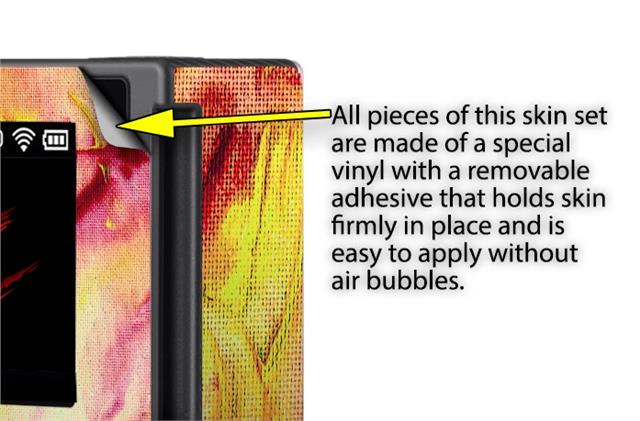 WraptoSkinz™ skins are superb photo quality designs and vibrant colors printed with special Eco-Friendly, fade resistant inks. Our skins are self-adhering flexible vinyl skins that helps prevent scratches. Made of composite, multi-layered commercial grade materials. The bottom layer is made with a special removable adhesive that is easily positioned and applied without air bubbles. We print your design on the bottom layer then bond a professional grade laminate over the entire skin adding a glossy protective finish.