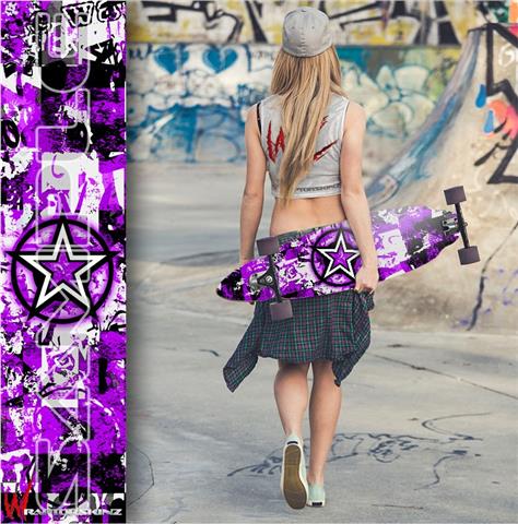 Graffiti Star Purple - Decal Style Vinyl Wrap Skin fits Longboard Skateboards up to 10"x42" (LONGBOARD NOT INCLUDED)