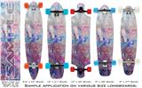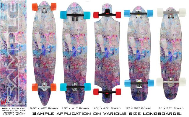 Our longboard skins are made so that one size fits boards up to 10” wide x 42” long. This means after applying the skin it you will trimming to fit you’re the shape of your board with a sharp utility knife.