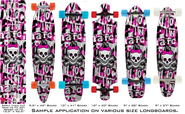 Our longboard skins are made so that one size fits boards up to 10” wide x 42” long. This means after applying the skin it you will trimming to fit you’re the shape of your board with a sharp utility knife.