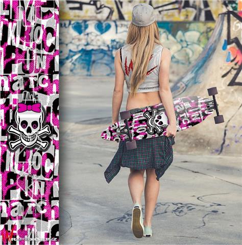 Girly Punk Skull - Decal Style Vinyl Wrap Skin fits Longboard Skateboards up to 10"x42" (LONGBOARD NOT INCLUDED)