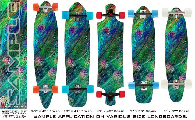 Our longboard skins are made so that one size fits boards up to 10” wide x 42” long. This means after applying the skin it you will trimming to fit you’re the shape of your board with a sharp utility knife.