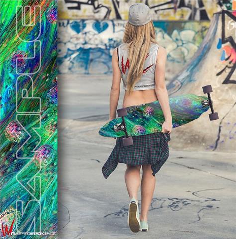 Professional 5 year indoor/outdoor vinyl with air release adhesive allowing easy application and no air bubbles. Printed with the latest UV protected inks to resist fading for up to 3 year in direct sunlight. Laminated to add a high gloss finish and added protection. Our board skins look amazing, printed in high resolution for unbeatable color and razor sharp designs.