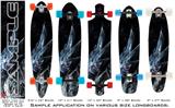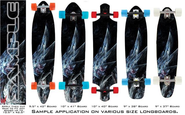 Our longboard skins are made so that one size fits boards up to 10” wide x 42” long. This means after applying the skin it you will trimming to fit you’re the shape of your board with a sharp utility knife.