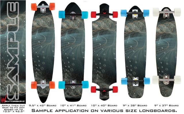 Our longboard skins are made so that one size fits boards up to 10” wide x 42” long. This means after applying the skin it you will trimming to fit you’re the shape of your board with a sharp utility knife.