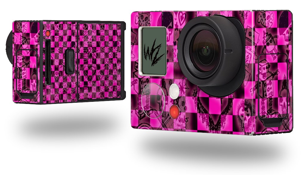 Pink Checkerboard Sketches - Decal Style Skin fits GoPro Hero 3+ Camera (GOPRO NOT INCLUDED)