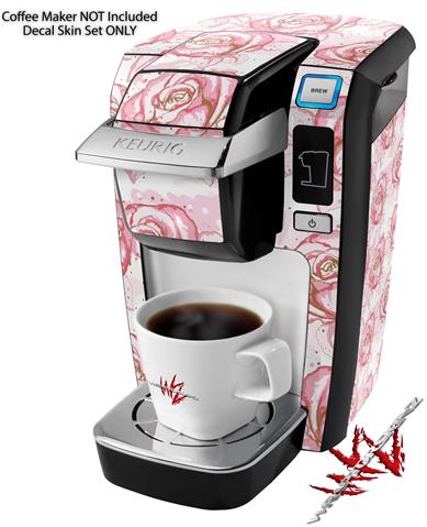 Decal Style Vinyl Skin compatible with Keurig K10 / K15 Mini Plus Coffee Makers Flowers Pattern Roses 13 (KEURIG NOT INCLUDED)